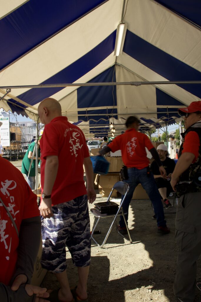 1万5千人にも埋もれないように真っ赤なポロシャツにしたことで